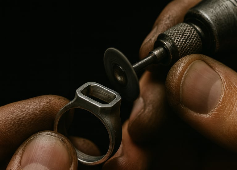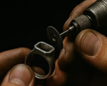 Design 3D, impression, fonte, sertissage et finitions : chaque projet est réalisé sur-mesure, avec la précision et la rigueur d’une véritable manufacture artisanale.